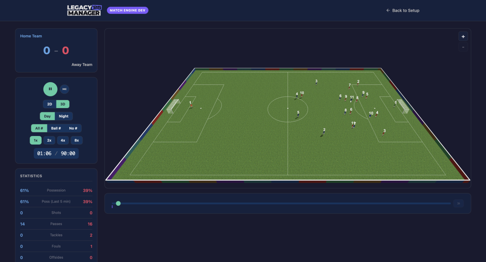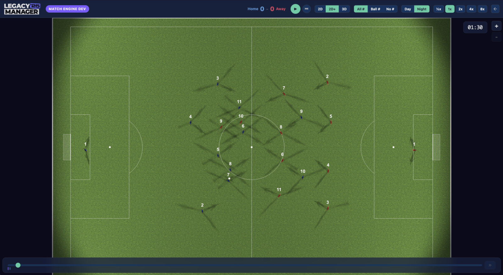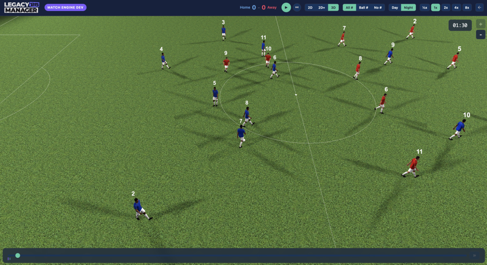 When I started work on the match engine in the early versions of Legacy Manager I contemplated having no match view at all, relying on just an old-school style text display. The early Championship Manager games worked that way, and they were some of the most fun I ever had playing management games.
