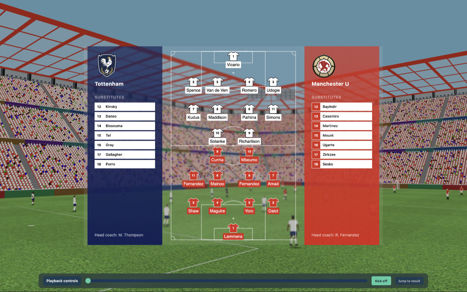 The finally, stadiums and on-screen animations such as starting lineups, goals, full time scores etc.